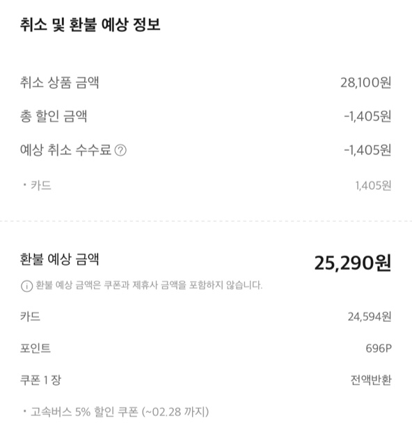 그래서 야놀자 환불을 했는데, 고속버스 환불 규정에 따라 5%의 수수료를 물어야했습니다. 처음에 5% 할인 쿠폰을 사용해서 할인했으니 거의 본전이기는 하죠.