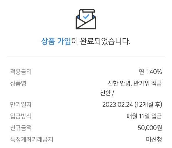 그런데 신한은행 한도가 따로 풀지 않는 이상 30만원밖에 되지 않아서, 처음 가입을 할 때는 이 30만원을 두 적금으로 쪼개서 보내야 합니다. 그래서 저는 청년에 25만원으로 초기 가입하고, 반가워에는 5만원을 초기로 가입한 다음, 다음날에 타 은행 계좌에서 각각 25만원과 45만원씩 이체하여 최대 납입 금액인 50만원을 채웠습니다.